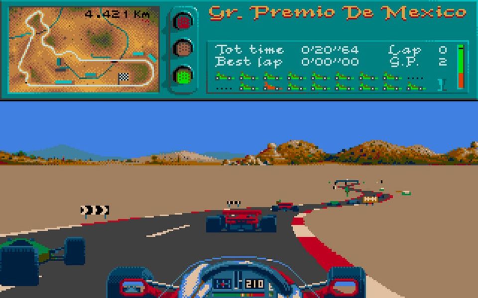 Vroom war ein Dauerbrenner bei Lankhor. Der erste Teil war bereits 1986 als "Wroom!" für den Sinclair QL erschienen (kennt Ihr nicht? Googelt es halt) 1991 dann erschien eine Version für den Atari ST, ein Jahr später die Amiga-Ausgabe, 1993 dann eine weitere für das Megadrive. Zwischendurch gab es auch noch eine Erweiterung (Vroom Datadisk). 1994 dann folgte - logischerweise - die PC-Version.  So weit ich weiß, firmierte das Game später (oder zwischendurch) sogar mit offizieller FIA-Lizenz unter dem Namen "F1 irgendwas"; dabei hatte auch der englische Publisher Domark seine Finger im Spiel.