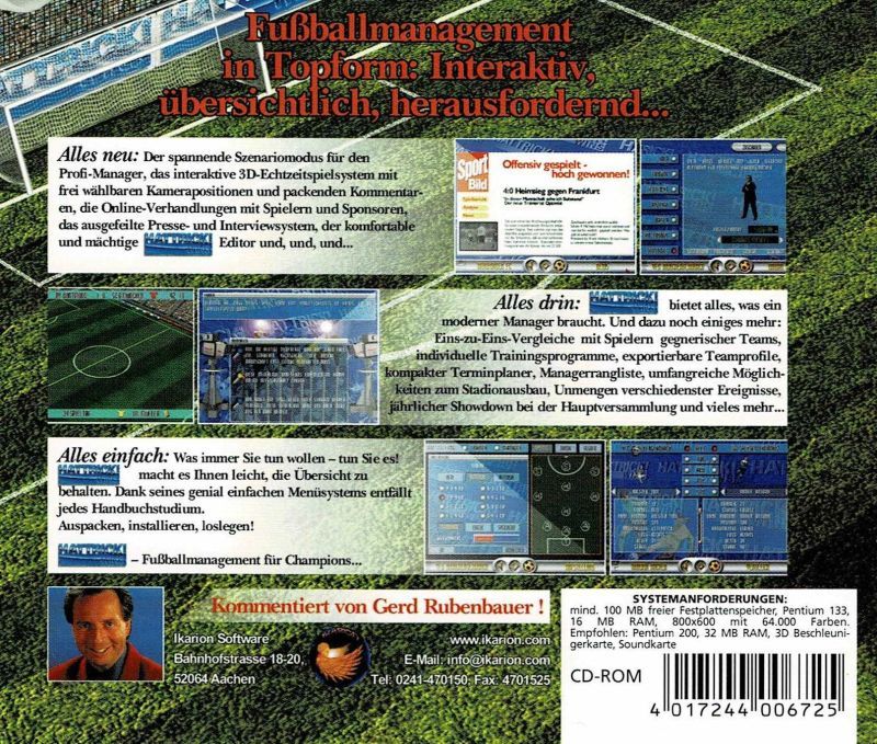 Ja, Hattrick! Wins hat tatsächlich eine Auszeichnung bekommen. Ich glaube, es war die PC Player (oder war es die Gamestar?), die die Fortsetzung von Hattrick! ganz offiziell und feierlich mit dem Titel "Überflüssigste Fortsetzung des Jahres" bedachte. Und das vermutlich leider wohl auch zu Recht. Nach dem Erfolg der ersten Ausgabe von Hattrick! im Jahr 1995 war recht bald beschlossen worden, dass da ein Nachfolger her musste. Gesagt, aber leider nicht getan, denn die Fertigstellung des Games verzögerte ein ums andere Mal. Als es dann doch endlich erschien ("das Game muss jetzt endlich einfach raus") war es technisch und grafisch hoffnungslos veraltet und ging gegen die starke Konkurrenz wie Anstoss 3 gnadenlos unter. Auf der Verpackung groß angepriesene Features wie das "interaktive 3D-Echtzeitspielsystem mit frei wählbaren Kamerapositionen" entpuppte sich als grafisches Desaster, das wohl jeder deaktivierte oder übersprang. Hinzu kamen ein altbackenes Menüsystem, fehlende Abwechslung und massig Bugs - so viele, dass die ersten 15.000 Exemplare nachträglich gepatcht werden mussten (was 1997 noch eine recht aufwenidge Sache war). Wie schlecht das Game war sieht man daran, dass viele Reviews die Kommentare von Labertasche Gerd Rubenbauer als Highlight des Games bezeichneten. Das ist ihm zuvor vermutlich auch noch nicht passiert.